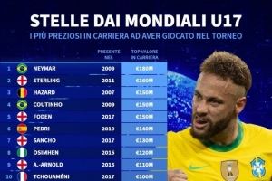 曾參加U17世界杯球員身價(jià)榜:內(nèi)馬爾1.8億歐居首,斯特林次席