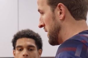 依照傳統(tǒng),賽后英格蘭隊長凱恩在更衣室里為寬薩頒發(fā)紀念帽子,祝賀他完成國家隊首秀。