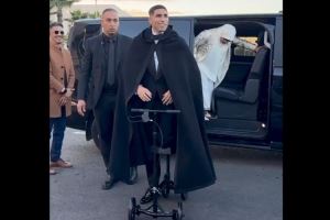 體育資訊11月20日訊 非洲足球聯(lián)合會頒獎典禮,據(jù)土耳其媒體Fotoma?報道,因腳踝受傷,阿什拉夫騎著特制的滑板車出席。