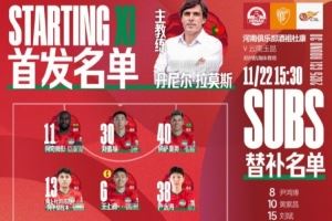 2025中超聯(lián)賽第30輪:河南俱樂部VS云南玉昆,首發(fā)及替補隊員名單