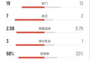 巴薩4-0畢巴全場數(shù)據(jù):射門19-13,射正7-2,控球率68%-32%