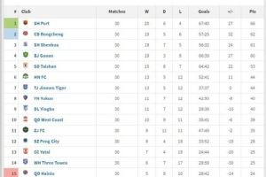 中超趣味積分榜:90分鐘積分榜、上半場積分榜、下半場積分榜