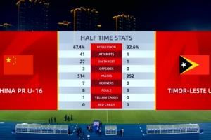 U16中國14-0東帝汶U16全場數(shù)據(jù):