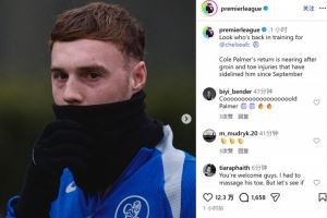 看看是誰(shuí)回來(lái)了?!帕爾默參加切爾西今日訓(xùn)練,本賽季4場(chǎng)2球
