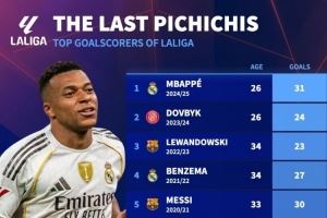 體育資訊11月25日訊 姆巴佩領(lǐng)取上賽季皮奇奇獎(jiǎng)(馬卡報(bào)頒發(fā)的西甲金靴),德國(guó)轉(zhuǎn)會(huì)市場(chǎng)盤點(diǎn)了近10年皮奇奇獎(jiǎng)得主,梅西連續(xù)5年獲獎(jiǎng)。