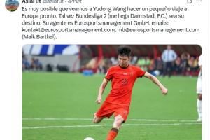 這位博主表示:“我們可能很快會(huì)看到王鈺棟前往歐洲進(jìn)行一次短期行程。也許德乙聯(lián)賽(我了解到是達(dá)姆施塔特俱樂部)將成為他的目的地。他的經(jīng)紀(jì)公司是Euro sports management。”