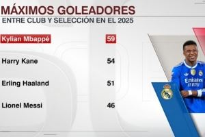 足壇2025年進(jìn)球榜:姆巴佩59球居首,凱恩、哈蘭德、梅西緊隨其后