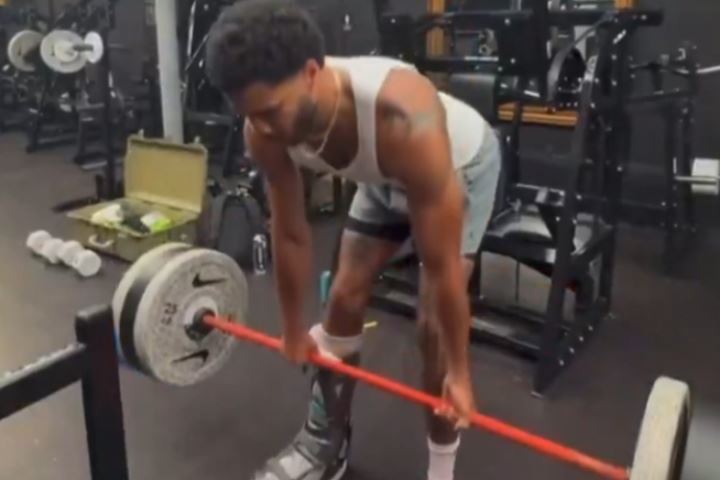 夠拼的!塔圖姆恢復(fù)上肢力量訓(xùn)練 腳上還踩著保護(hù)靴呢