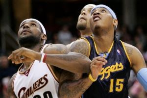 2003-04賽季,安東尼場均21分6.1籃板2.8助攻,掘金隊(duì)最終43勝39負(fù)排名西部第8進(jìn)入季后賽,詹姆斯場均20.9分5.5籃板5.9助攻,騎士隊(duì)最終35勝47負(fù)未能進(jìn)入季后賽。2003年最佳新秀評選,詹姆斯得分508分排名第一,安東尼得分403分排名第二。