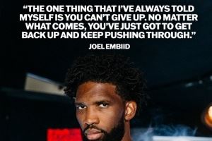 在照片上,附有恩比德的一段話:“我一直告訴自己的一件事就是,你不能放棄。無論遇到什么,你都必須重新站起來,堅(jiān)持下去?!?/p>