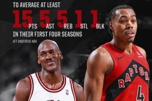 歷史唯二!猛龍官方:巴恩斯生涯前4季場均15+5+5+1+1 比肩喬丹