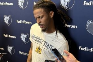 體育資訊10月2日訊 莫蘭特在訓練營特地穿上了母校莫瑞州立大學的T恤。在采訪的時候,莫蘭特表示自己每天都會穿莫瑞州立大學的裝備。