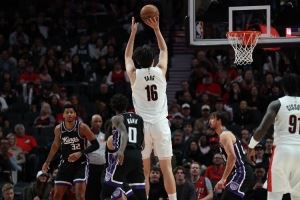 楊瀚森對(duì)國(guó)王得到16分4籃板3蓋帽,其中第三節(jié)單節(jié)14分,對(duì)此比盧普斯回答道:“那感覺(jué)太奇妙了。因?yàn)樗习雸?chǎng)表現(xiàn)還有點(diǎn)掙扎,所以我還有點(diǎn)意外,然后突然他就像火箭一樣爆發(fā)了。能看到這樣的表現(xiàn)我覺(jué)得很有趣,很高興能參與其中。”