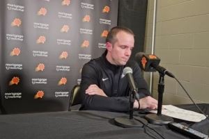 體育資訊10月26日訊 NBA常規(guī)賽,太陽111-133大比分不敵掘金。賽后,太陽主帥喬丹-奧特接受了采訪。