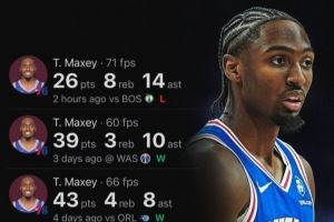 馬克西開賽季五戰(zhàn)場(chǎng)均35.2分 上一個(gè)比他高的是2019年的哈登