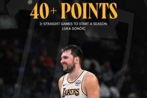 湖人官方:東契奇開(kāi)季連續(xù)三場(chǎng)40+得分!上一位做到的是張伯倫!