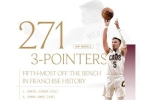 體育資訊11月8日訊 騎士官方發(fā)布紀(jì)錄,梅里爾以替補(bǔ)身份命中率271記三分,超越科沃爾排名騎士隊(duì)史第五。