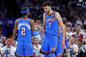 雷霆上賽季68勝14負(fù),首輪橫掃灰熊,次輪4比3擊敗掘金,西決4比1紳士橫掃森林狼,總決賽4比3擊敗步行者,成功奪冠。