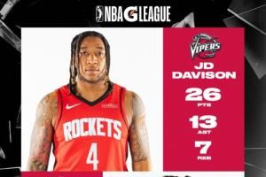 Die π!休斯頓雨姐JD·戴維森統(tǒng)治G聯(lián)盟 狂砍26分7板13助!