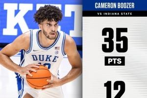 體育資訊11月17日訊 在此前的一場(chǎng)NCAA比賽中,杜克大學(xué)100-62大勝印第安納州立大學(xué)??仿 げ紳蔂柨窨?5分12籃板5助攻3搶斷3蓋帽。而這僅僅是他代表杜克打的第四場(chǎng)正式比賽。