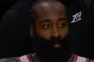 在想什么?比賽已無(wú)懸念 哈登眼神黯淡無(wú)光 小卡輕撫嘴唇若有所思