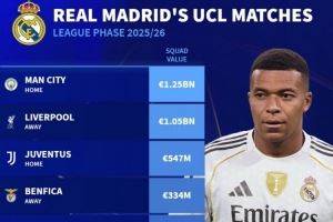 體育資訊8月29日訊 本賽季歐冠聯(lián)賽階段對陣抽簽結(jié)果出爐,德國轉(zhuǎn)會市場列出了皇馬對手的身價。