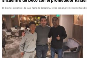 體育資訊9月25日訊 西班牙媒體《每日體育報》報道,巴薩體育總監(jiān)德科在酒店與年輕邊鋒拉法-貝利尼奧及其父親會面。