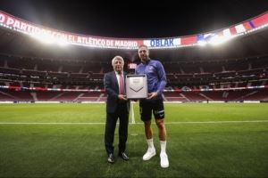 體育資訊9月25日訊 歐冠聯(lián)賽階段第1輪,馬競(jìng)對(duì)陣?yán)锲值谋荣?,球?duì)門將奧布拉克完成了代表馬競(jìng)出戰(zhàn)500場(chǎng)的里程碑。