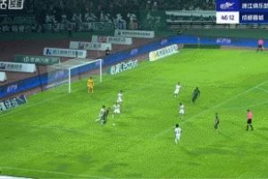 體育資訊09月26日訊 中超第26輪,浙江vs蓉城下半場剛剛開始不久,卡列洛精彩低射擦立柱偏出,劉殿座倒地撲救,裁判判門球