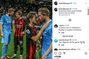 本場比賽,那不勒斯1-2輸球。賽后,德布勞內(nèi)在社交媒體上傳了與米蘭中場莫德里奇的合影,并配文寫道:“每個(gè)人都享受精彩的足球,很高興見到你,兄弟@lukamodric10?!?/p>