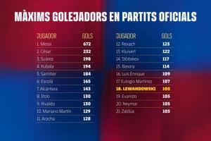本周日的比賽同時達(dá)成了蒙錐克球場百球里程碑。此役前巴薩已在此打入99粒進(jìn)球,孔德的破門成為蒙錐克球場第100球。萊萬攻入第第101球,他以24球成為俱樂部在該球場的歷史射手王,拉菲尼亞以15球位列次席。