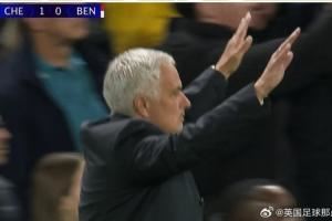 ??恩佐罰角球時,穆里尼奧走過來告訴本菲卡球迷不要再扔?xùn)|西