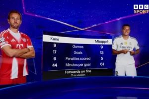 BBC統(tǒng)計(jì)凱恩、姆巴佩本賽季數(shù)據(jù):