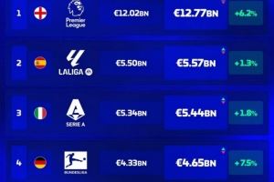 體育資訊10月20日訊 德轉(zhuǎn)此前更新了足壇球員身價,并盤點了五大聯(lián)賽球隊總身價榜,其中英超遙遙領先,以下為具體情況: