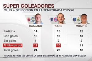 體育資訊10月23日訊 ESPN統(tǒng)計了哈蘭德、凱恩、姆巴佩本賽季俱樂部+國家隊的數(shù)據(jù),并做出對比。