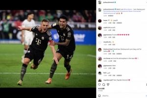 本場(chǎng)比賽基米希打入賽季首球,他也在社媒曬出慶祝照,配文調(diào)侃道:“凱恩小心了,我要追上你了!”