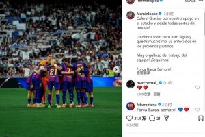 “我們傾盡全力,但征程仍在繼續(xù),未來還有很多比賽,此刻我們已經(jīng)專注于接下來的比賽。為球隊(duì)的努力感到無比自豪,繼續(xù)前進(jìn)!巴薩永遠(yuǎn)前進(jìn)!”