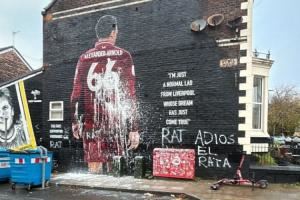 阿諾德利物浦壁畫今晨慘遭污損,被涂鴉大字:“再見吧,老鼠”