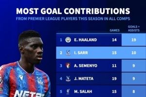 體育資訊11月7日訊 德國轉(zhuǎn)會市場統(tǒng)計了英超球員本賽季各賽事的參與進球數(shù)量,并列出榜單,哈蘭德參與19球居首,薩爾參與10球次席。