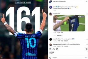 161球并列隊史射手榜第4!勞塔羅社媒轉(zhuǎn)發(fā)數(shù)據(jù)并曬慶祝照紀念
