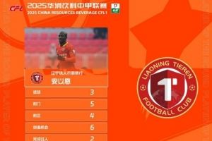 中甲聯(lián)賽第30輪比賽中,遼寧鐵人主場對陣佛山南獅。上半場第40分鐘,安以恩小角度墊射得分打破僵局。下半場第69分鐘,安以恩推射建功。第76分鐘,安以恩帶球突入禁區(qū)晃過門將后推射破門,幫助球隊鎖定勝局。第81分鐘,安以恩挑傳助攻隊友再下一城。最終,安以恩上演帽子戲法且錄得1次助攻,幫助遼寧鐵人農(nóng)商銀行5-0大勝對手。