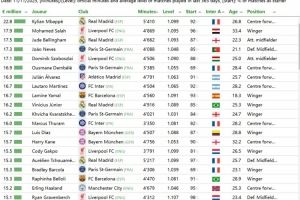 CIES球員應得最高年薪排行:姆巴佩2280萬歐居首,薩拉赫位居次席