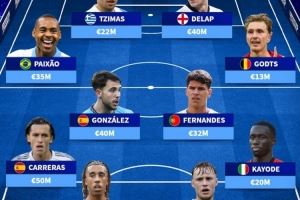 中場:派尚(巴西,3500萬)、尼科·岡薩雷斯(西班牙,4000萬)、馬特烏斯·費爾南德斯(葡萄牙,3200萬)、米卡·霍茨(比利時,1300萬)