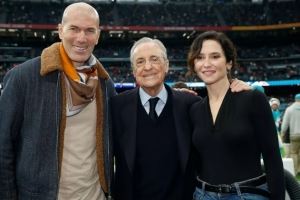 邁阿密海豚和華盛頓指揮官在伯納烏進(jìn)行了NFL在西班牙的首場比賽,賽前,弗洛倫蒂諾走上球場,與馬德里自治區(qū)主席伊莎貝爾·迪亞斯·阿尤索以及皇馬傳奇齊達(dá)內(nèi)合影。