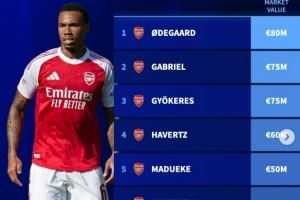 阿森納可能缺席北倫敦德比名單:加布里埃爾、厄德高、哈弗茨在列