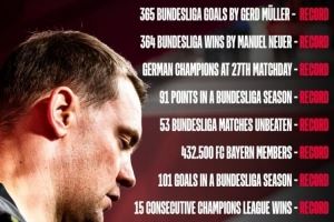 拜仁社媒曬紀錄:諾伊爾德甲取勝364場,球隊賽季開局16連勝
