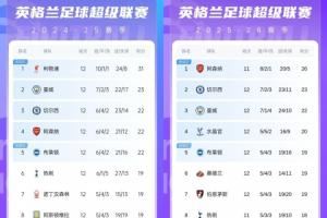 24/25賽季英超與25/26賽季英超12輪后對(duì)比