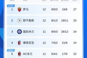 體育資訊11月24日訊 意甲第12輪結(jié)束一場(chǎng)較量,羅馬客場(chǎng)3-1戰(zhàn)勝克雷莫內(nèi)塞,登頂意甲積分榜榜首。完整意甲積分榜如下,今天凌晨3點(diǎn)45分將迎來(lái)國(guó)際米蘭vsAC米蘭的重磅對(duì)決。