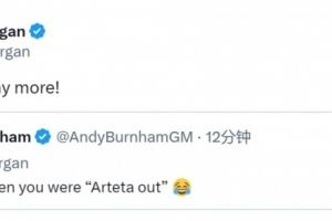 有球迷在社交媒體上調(diào)侃阿森納球迷摩根:“我記得你喊過阿爾特塔下課(out)?!?/p>