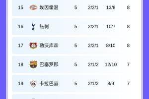 西甲五隊(duì)僅皇馬進(jìn)前八,馬競(jìng)絕殺國(guó)米升至第12名,巴薩掉至第18。畢爾巴鄂排名第27,比利亞雷亞爾1平4負(fù)排名倒數(shù)第三。